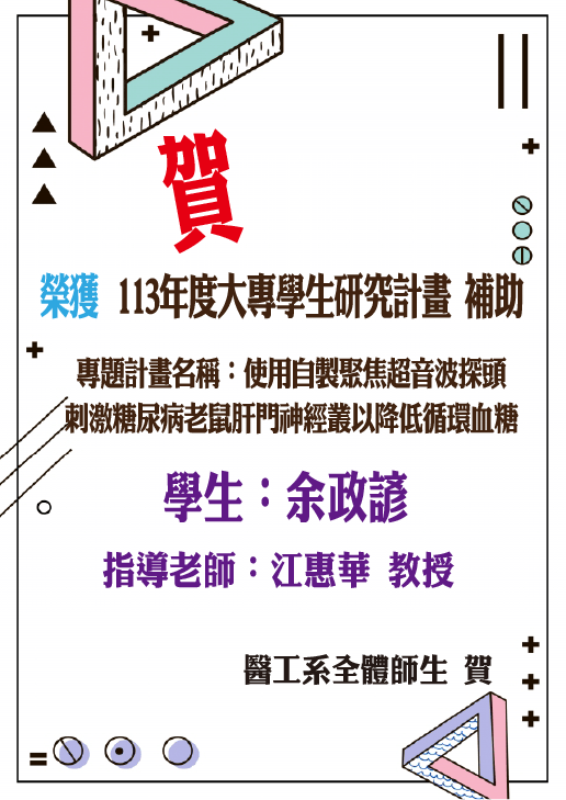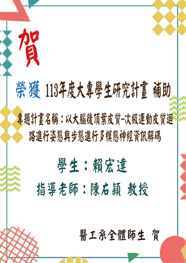 賀本系兩位同學申請『113年度大專學生研究計畫』補助榮獲核定成功